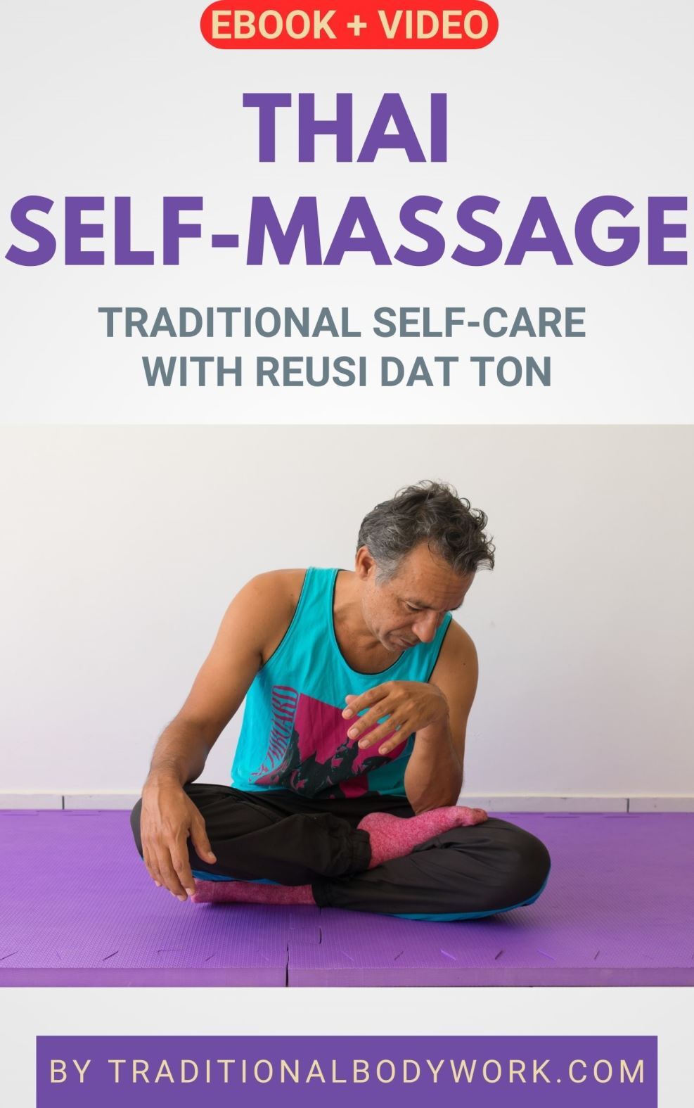 This product contains an eBook/workbook (pdf) and a video (mp4). The video (30 minutes), which can be downloaded or streamed, demonstrates the full body Thai Self-Massage sequence.