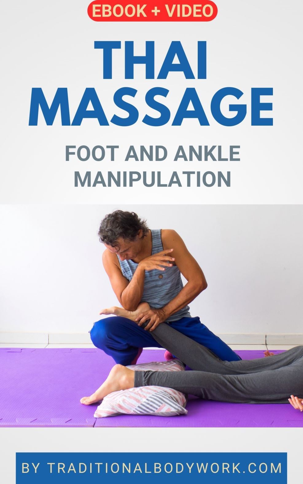 This product contains one eBook (pdf) and one video (mp4). The video (29 minutes), which can be downloaded or streamed, demonstrates the Thai Massage foot and ankle manipulations session.